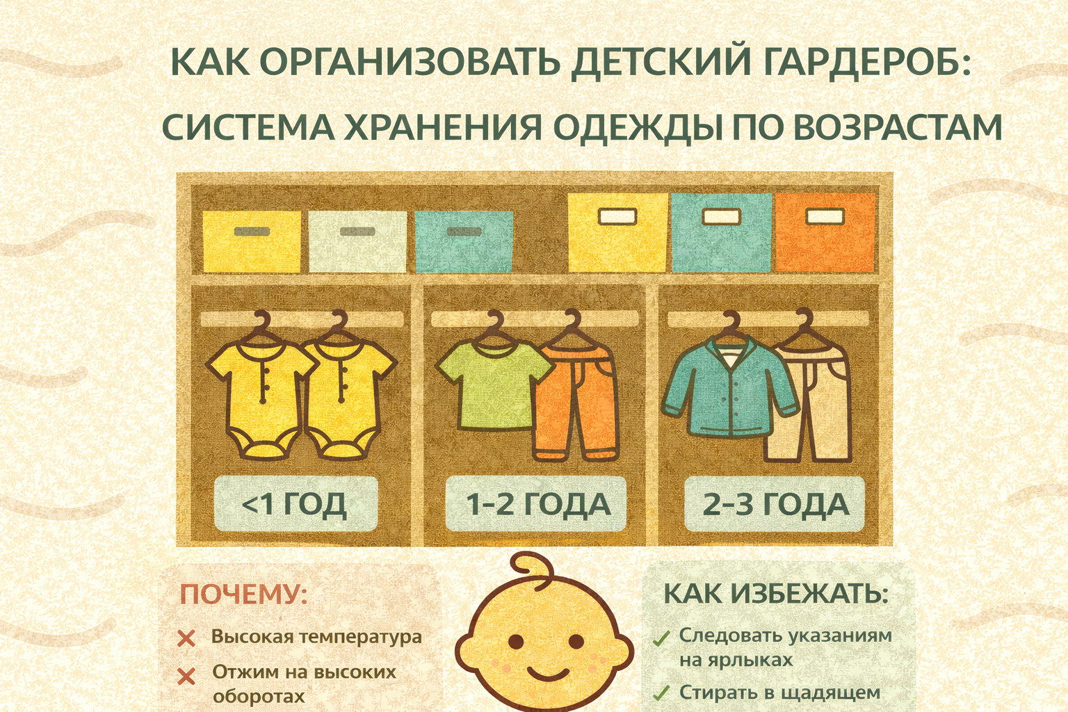Организация детского гардероба — это не про эстетику и красивые фото в Instagram. Это про то, чтобы вам было легче жить: быстро находить нужное, не покупать лишнее, не тратить время на поиски.